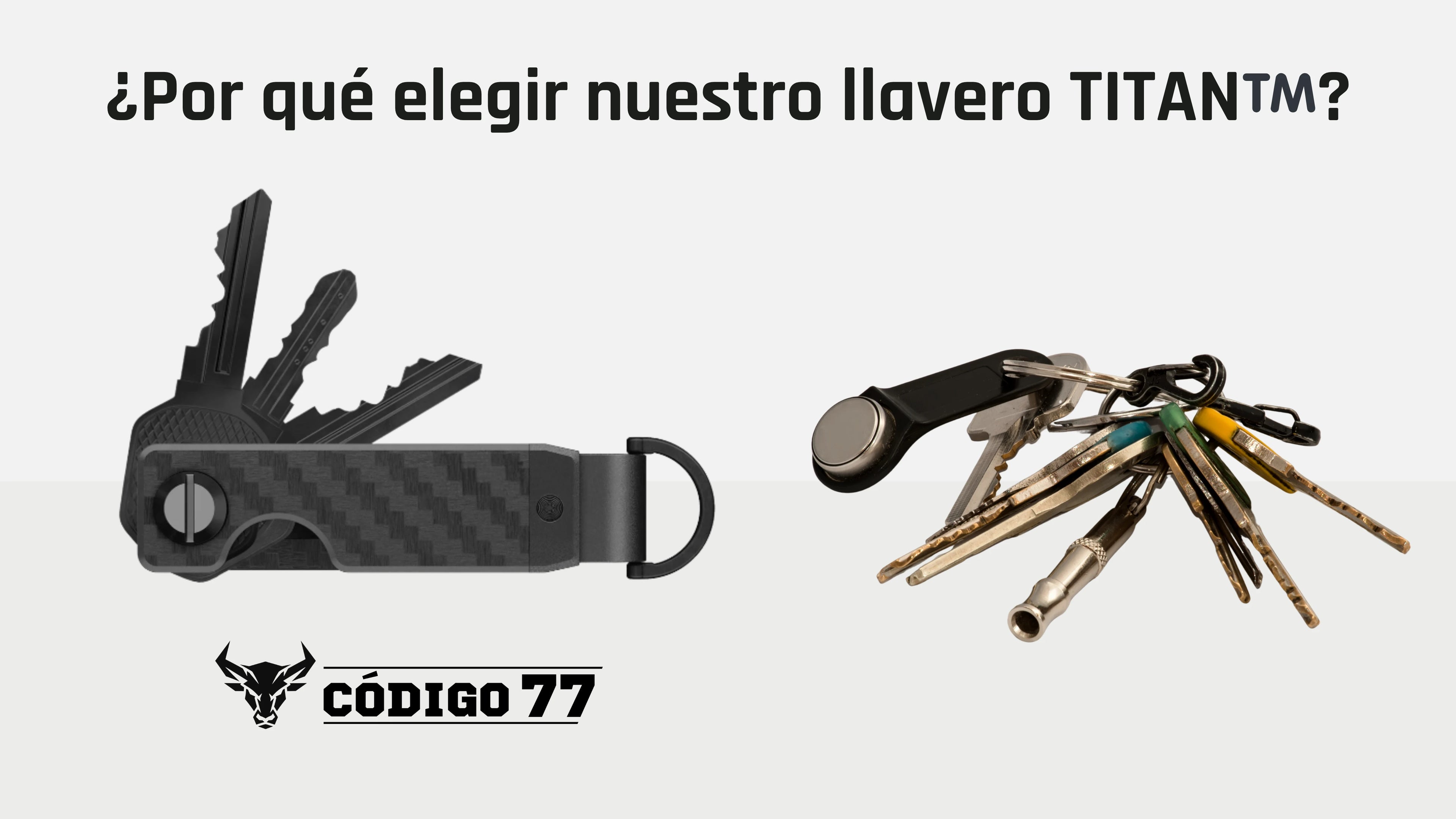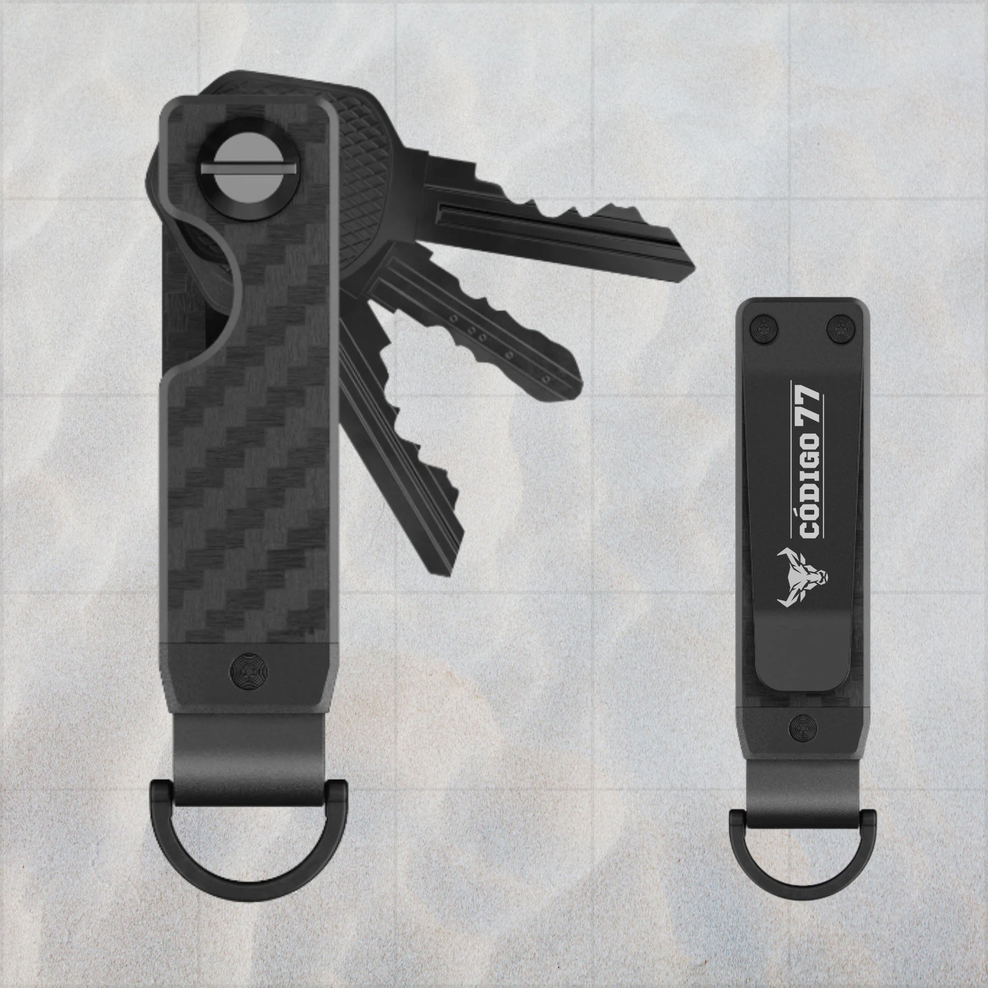 El llavero TITAN™ de carbono Código 77 ha sido diseñado para quienes valoran la organización, la durabilidad y el estilo táctico.
