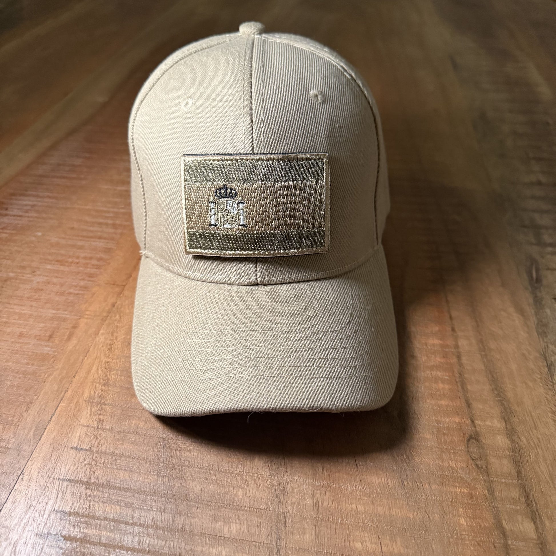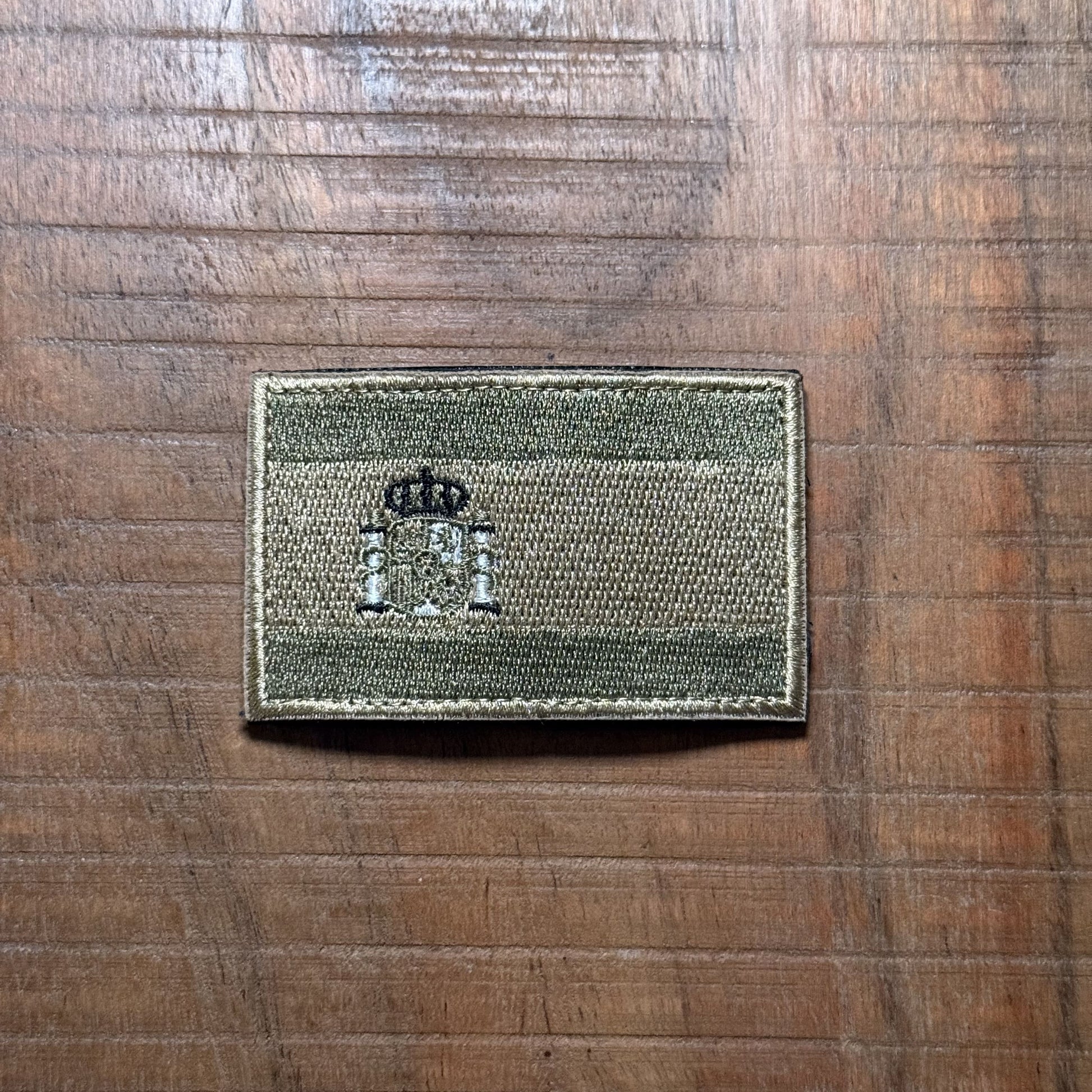 Parche bordado de tonos áridos, con la bandera de España.