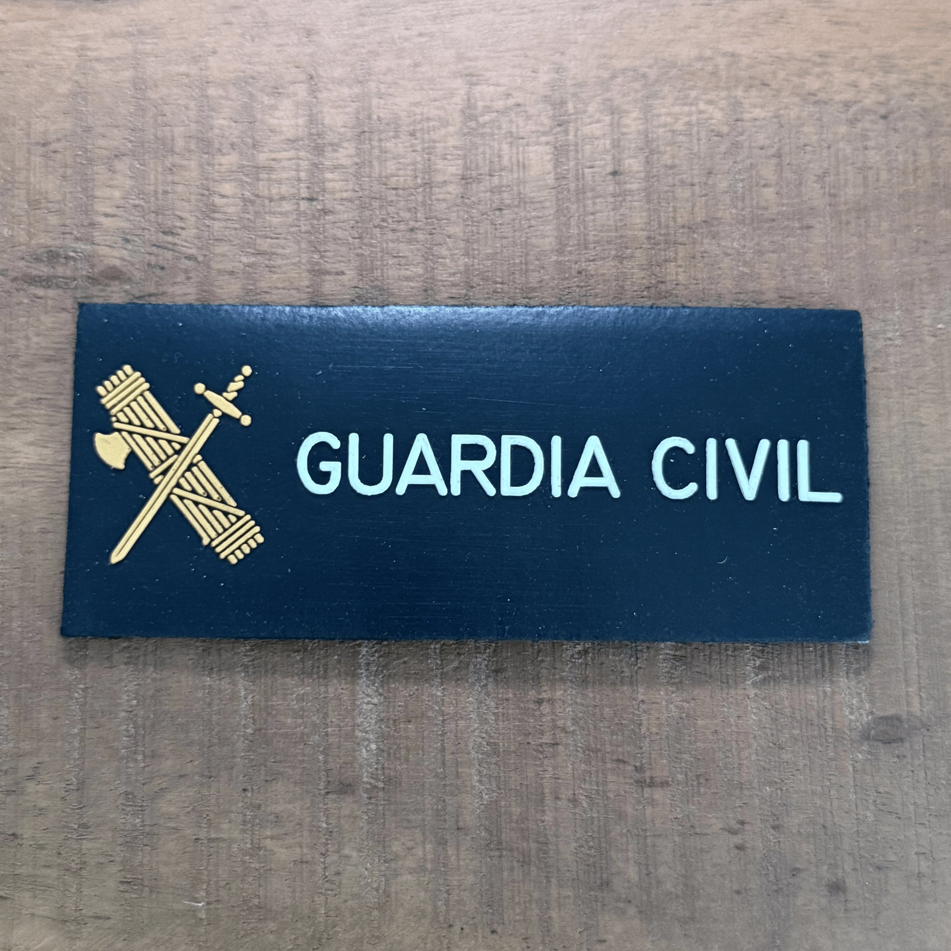 Diseñado con la tipografía y el emblema oficial de la especialidad ARS de la Guardia Civil, en un formato rectangular y medidas oficiales.